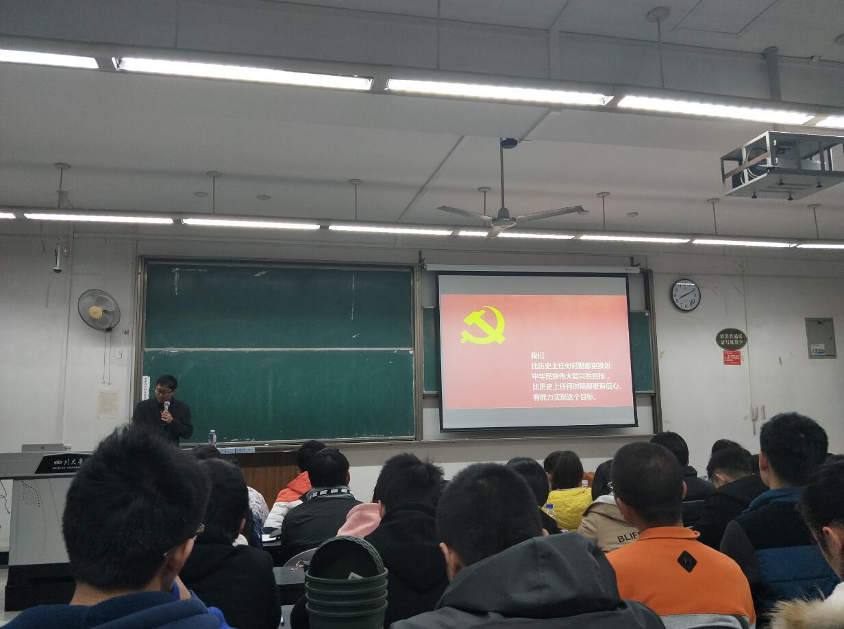 为使大学生切实学习“十九大”精神,明确自身的成长目标与发展方向,2017年12月17日晚19时,amjs澳金沙门线路首页党委书记林宏辉教授在一教B座407教室,以“大学生如何学习十九大精神”为主题,给学院同学作了一次充满激情的宣讲。在课上,所有同学都聚精会神,认真聆听。