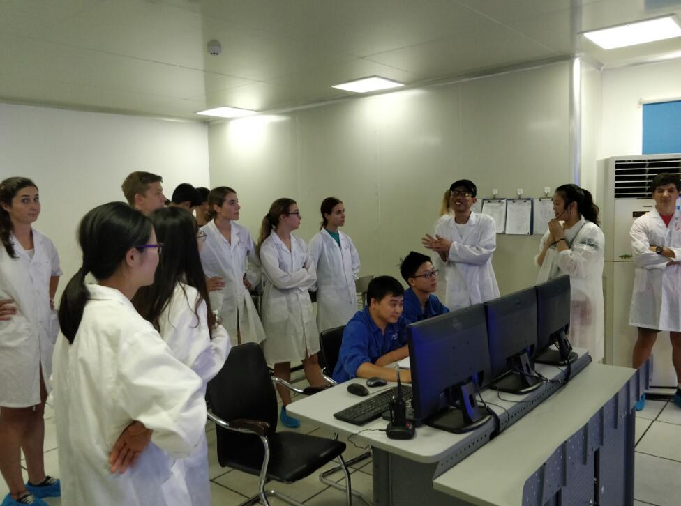 在新希望集团吃过丰盛的午餐后,全体同学继续前往成都泰合健康科技集团华神制药厂进行参观。到达华神制药厂后,大家换上实验服,戴上鞋套与头套,开始了参观。