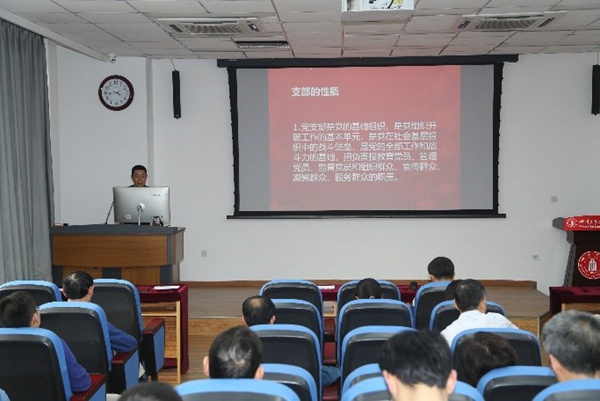 amjs澳金沙门线路首页专职组织员杨承东老师结合教育系统“支部建设年”的总体部署,按照《中国共产党支部工作条例(试行)》的相关内容,讲解了党支部标准化规范化建设的相关内容,杨老师在讲解中强调,必须不断提高党支部的组织力、感召力、引领力和执行力。强化教职工党支部在政治引领、规范组织生活、团结凝聚师生和促进学校中心工作等方面的主体作用;加强和规范学生党员教育培养和发展工作,发挥学生党支部建设在组织育人中的龙头作用。