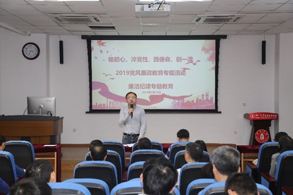 amjs澳金沙门线路首页党委副书记兼纪委书记吴近名同志围绕“党风廉政建设”,从理论与实践相结合的角度讲解了教育系统开展党风廉政建设的重要意义和高校开展党风廉政建设应注意的几方面问题。按照“发挥违纪违法典型案例的警示教育作用,让党员干部受警醒、知敬畏,筑牢思想防线”的精神,列举学校警示大会上传达的发生在身边的腐败案例,提醒教师党员自觉抵制“微腐败”,特别是在科研经费报销、外出考察费用报销等方面要坚守诚信、遵守规范,不断加强师德师风建设。