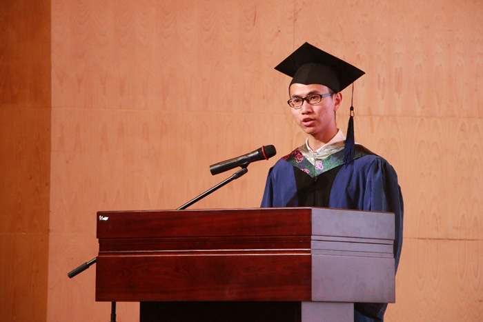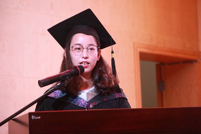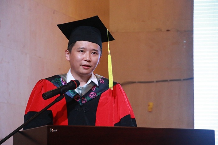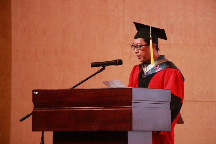 张阳教授作为教师代表发言,他向同学们分享了他对社会责任感的认识,尤其是在中国的国情下完成高等教育的学生应具备的社会责任,希望同学们:面对一切事物保持正义感,坚持科学的正义感。