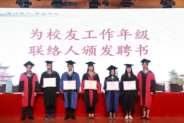 最后,学院的领导向2019届毕业生中的5位“校友联络员”颁发了学校的聘书,希望他们架起学院与同学联系的桥梁,欢迎同学们常回家看看!