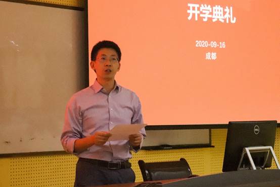 庄严慷慨的国歌奏毕,开学典礼随之拉开帷幕。王红宁院长首先代表学院及全体教职工向今年新入学的研究生同学表示祝贺和欢迎,随后做了题为《做一个有志向有情怀有本领的创新者》致辞。王院长在致辞中,首先引用李言荣校长在校开学典礼上“精而广”寄语,激励新同学们在新时代、新征程上砥砺前行;随后在学长“江姐”诞辰一百周年之际,寄望新生传承学院的优良传统,做有理想、有情怀、有担当的革命精神传承人;接着引述了习近平总书记在与科学家座谈会上的讲话,鼓励全体新同学从读研开始,坚持科研创新,拓展科学技术的广度和深度。最后,王院长嘱托新生们要不忘初心、勤勉笃学、行稳致远,做“顶天立地”的科研,将个人理想与国家需求结合起来,成为更好的自己。