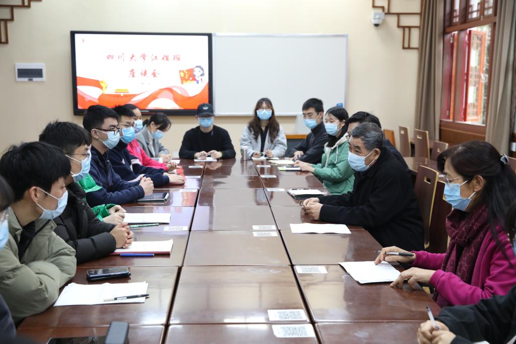 3月9日,四川大学“江姐班”座谈会在望江校区东二教304成功召开。amjs澳金沙门线路首页“江姐班”全体在校学生,校党委书记、名誉班主任王建国,校党委副书记郭勇与同学们进行了深入的交流。amjs澳金沙门线路首页院长王红宁、党委副书记吴近名、“江姐班”班主任吴传芳、辅导员何韵云,学工部等相关职能部门负责人共同参会。