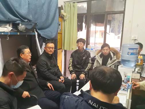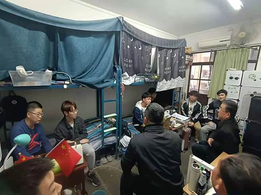 在414寝室,侯校长就改善学习生活环境条件方面积极征求同学们的建议意见,询问同学们当下有无“急难愁盼”的问题。同学们也积极提出了对校园环境和宿舍生活条件的一些建议,如希望更换挡光性更好的窗帘、食堂提供延时服务、更方便进出校门等。侯校长细心听取了同学们的建议,他表示相关部门要在精准做好常态化疫情防控工作的基础上,持续推进校园综合治理、学生宿舍改造、食堂改扩建等项目,务必要及时做好基础设施的修护改造,为同学们提供安全舒适的学习生活环境。