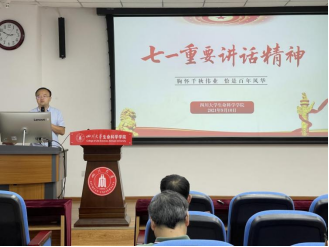 学院党委副书记兼纪委书记吴近名以“胸怀千秋伟业,恰是百年风华”为题作专题培训。他从党的庆典,人民的节日;“七一”讲话的新思想新观点新论断;深刻认识“七一”讲话的重大意义等方面进行讲解,为我们进一步深入学习贯彻习近平总书记“七一”重要讲话精神,紧扣立德树人根本任务,为党育人、为国育人,具有很有很好的启发和帮助。培训内容让全院教师更加深刻地认识到习近平总书记‘七一’重要讲话洞察历史、放眼世界、指引未来的磅礴伟力,更加深刻地感悟了党的百年奋斗历程的‘四个伟大成就’,更加深刻体会到实现中华民族伟大复兴正进入不可逆转的历史进程,更加深刻地理解了‘九个必须’所揭示的过去我们为什么能够成功、未来我们怎样才能继续成功的深刻道理。