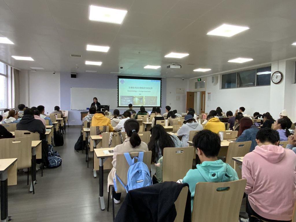 2021年10月19日中午12:40—13:50,南开大学amjs澳金沙门线路首页微生物学系副系主任潘皎副教授在江安校区第一教学楼A606教室为拔尖、强基学生做主题为“生物技术在文物保护中的应用”的专题讲座。我院生物技术系主任赵建教授担任主持人,2020级、2021级生物拔尖班、强基班同学共计57人参加讲座。