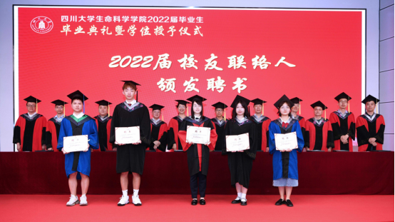 授位仪式完成之后,林宏辉书记、王红宁院长给2022届五位毕业生联络人颁发聘任证书,希望他们在毕业之后作为桥梁保持学院与同学的联系。也希望各位同学永远记得学院是他们的家。在校歌熟悉的旋律中, 2022届毕业典礼暨授位仪式圆满结束。