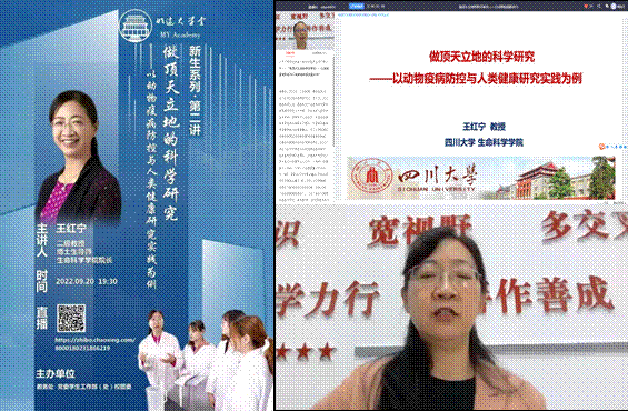 2022年9月20日晚,生命科学院院长、博士生导师王红宁教授应邀作四川大学明远大学堂新生系列讲座第二讲,为新生带来了“做顶天立地的科学研究——以动物疫病防控与人类健康研究实践为例”的专题讲座。