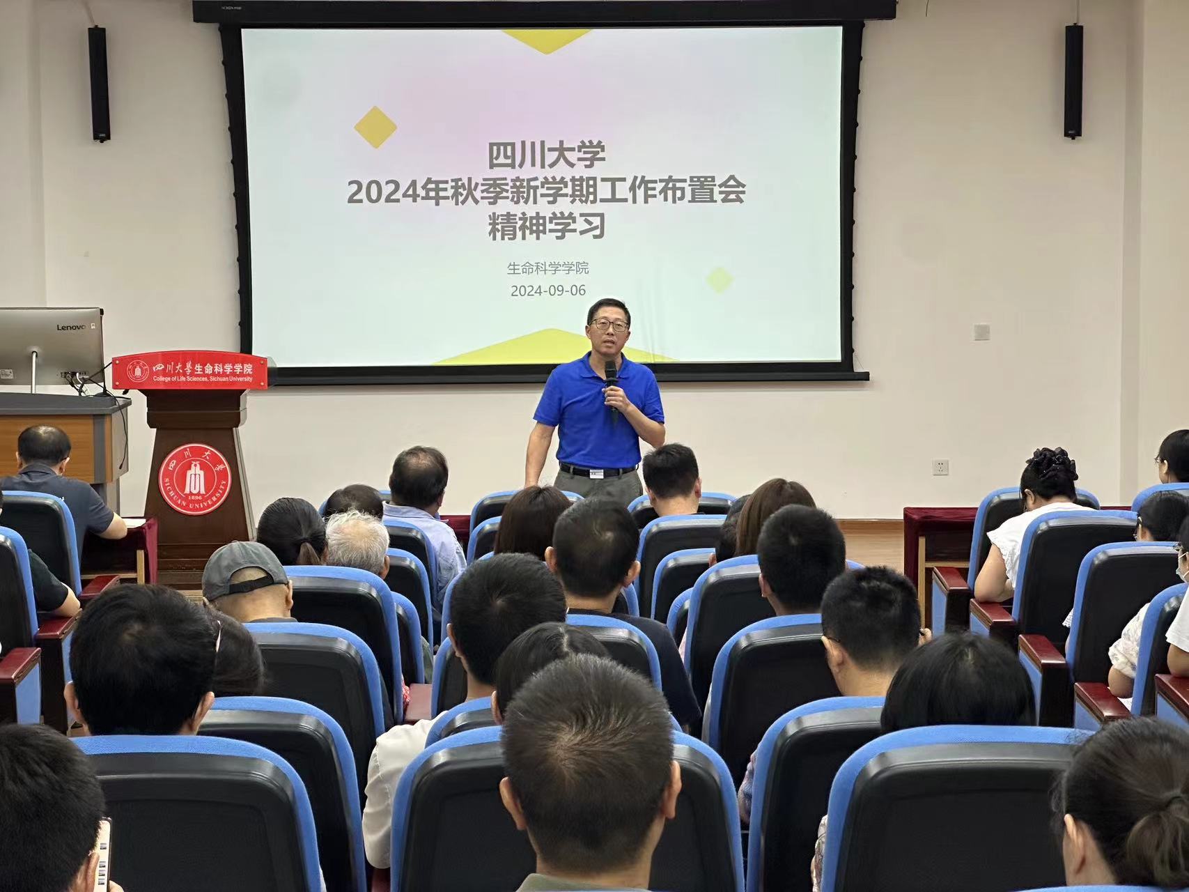 2024年9月6日,amjs澳金沙门线路首页在学术报告厅召开全院教职工大会传达部署新学期重点工作,院党委副书记兼纪委书记吴近名主持会议。