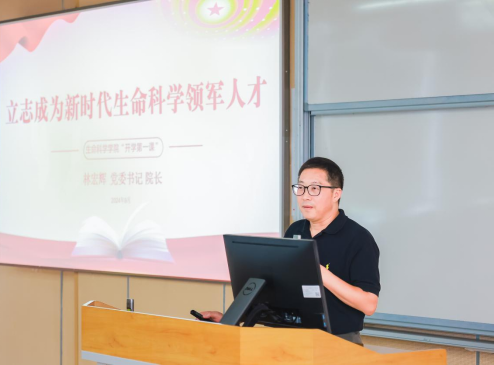 开学典礼结束后,林宏辉院长、书记以《立志成为新时代生命科学领军人才》为题,为新生们讲授了开学第一课。鼓励同学们要向学院杰出校友学习,传承“江姐精神”,以“第二个百年奋斗目标”为指引,成为新时代生命科学领军人才,谱写新时代青年甘于奉献、勇立潮头的新篇章!
