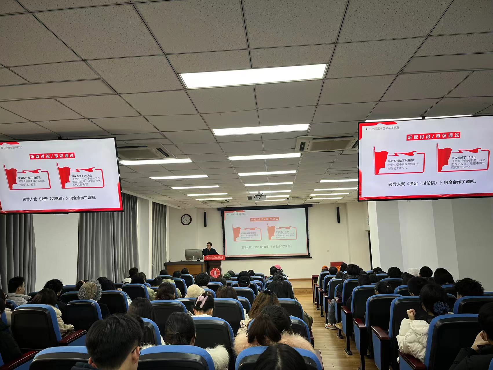 首先,林书记向在场的各位学生党员和入党积分子介绍了党的二十届三中全会的公报内容,包括全会强调进一步全面深化改革的总目标是继续完善和发展中国特色社会主义制度,推进国家治理体系和治理能力现代化,并提出“学习贯彻党的二十届三中全会精神,为推进美丽中国建设贡献生科人的力量”这一主题。