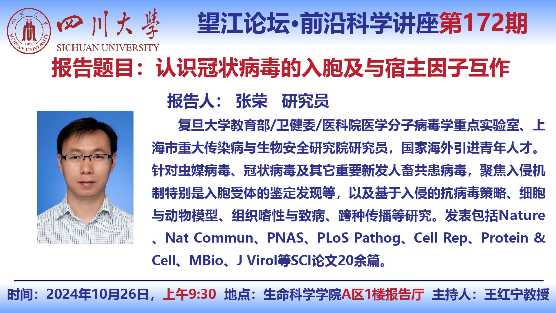 望江论坛-前沿科学讲座(第172期):张荣研究员10月26日学术讲座