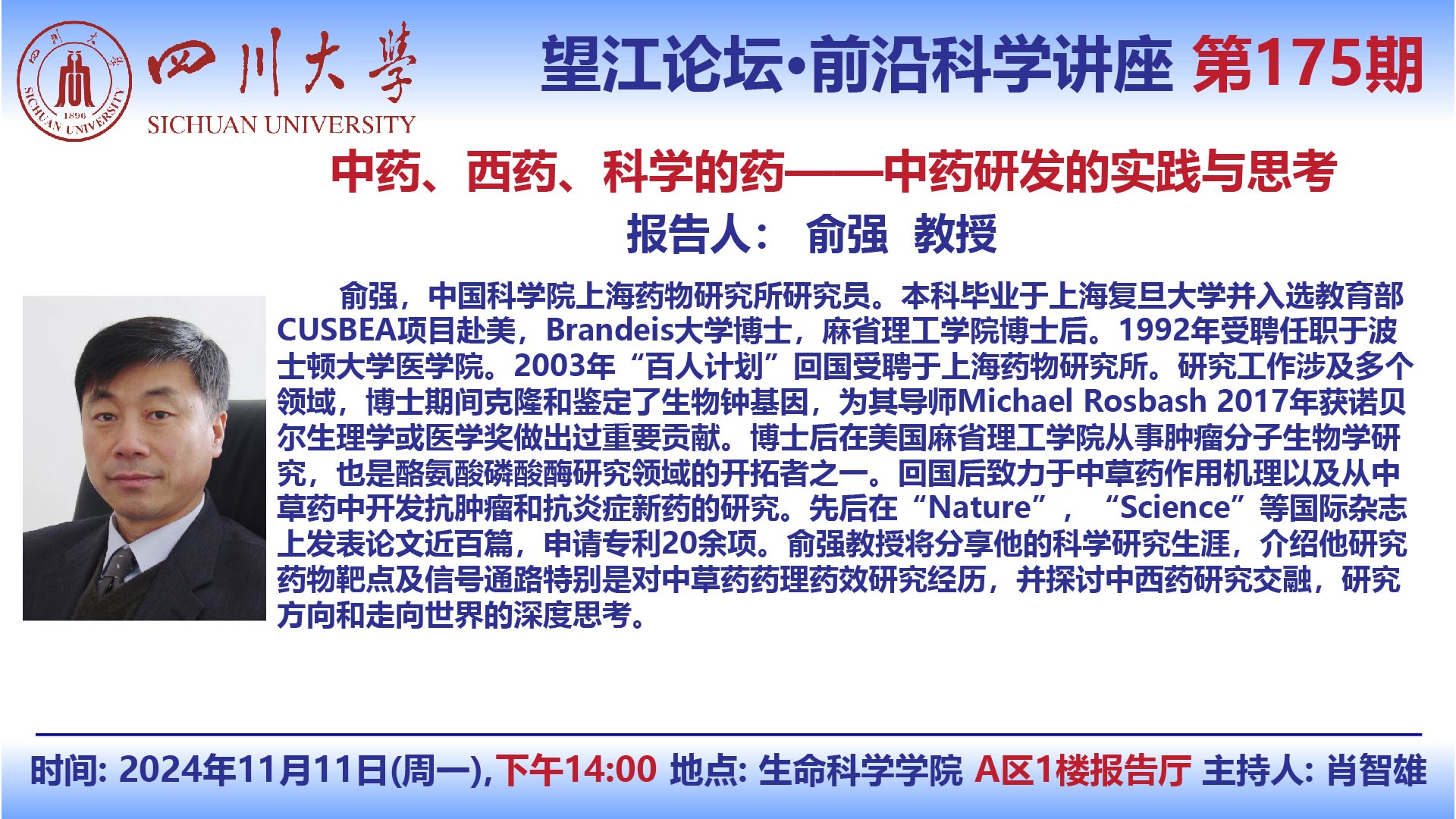 望江论坛-前沿科学讲座(第175期): 俞强教授11月11日学术讲座