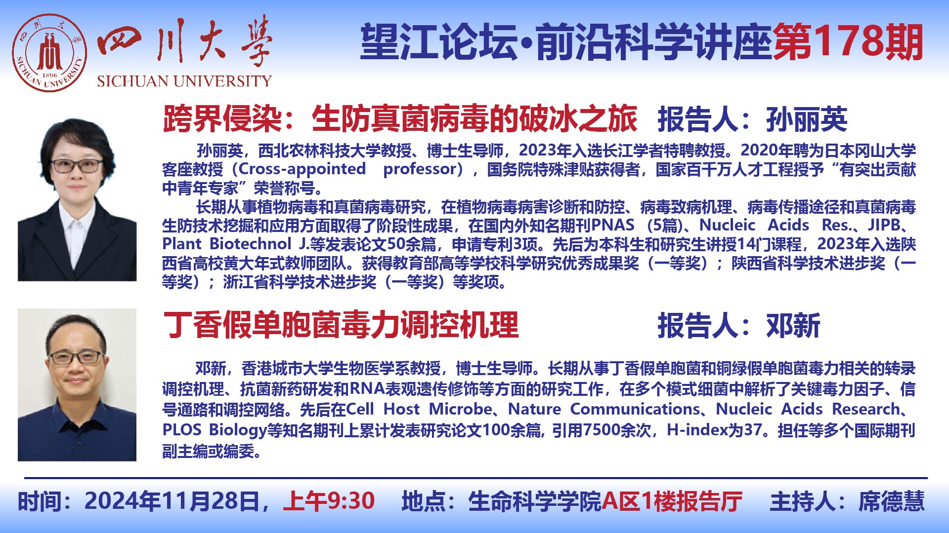 望江论坛-前沿科学讲座(第178期): 孙丽英教授、邓新教授11月28日学术讲座