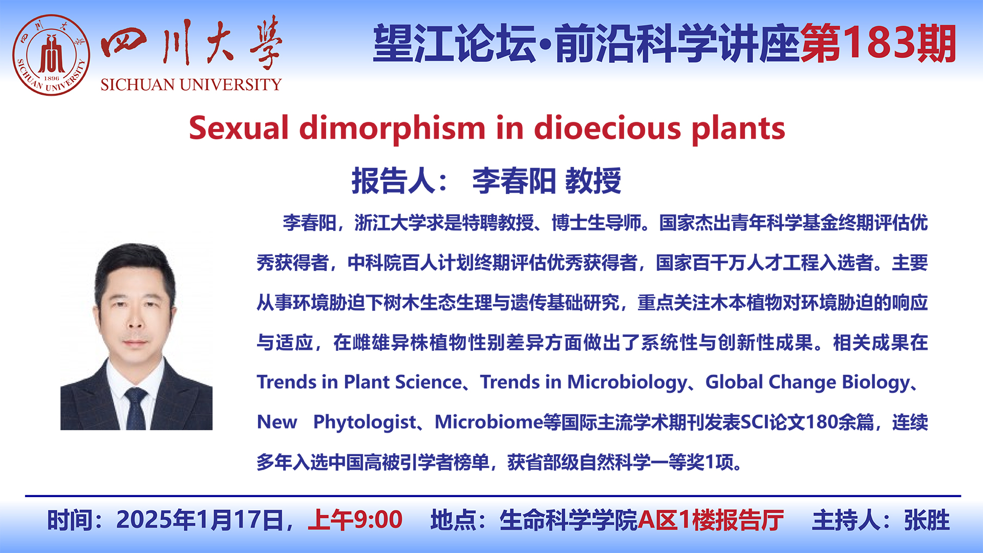 望江论坛-前沿科学讲座(第183期):李春阳教授1月17日学术讲座
